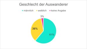 Übrigens waren bei denjenigen Auswanderinnen, bei denen der Familienstand bekannt ist, nur 29 Prozent der Frauen verheiratet und 71 Prozent ledig.